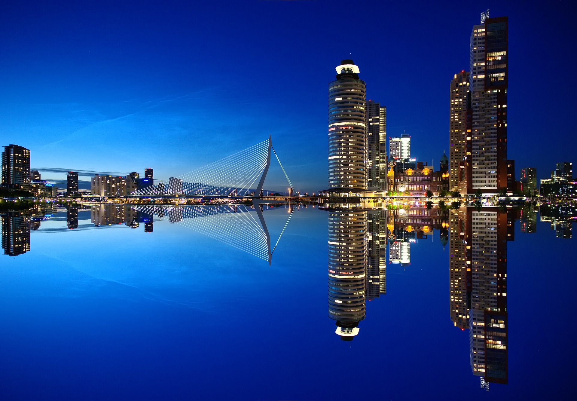 Hét symbool van Rotterdam is natuurlijk de Erasmusbrug, het indrukwekkende staaltje architectuur dat de Maas overspant en de verschillende stadsdelen met elkaar verbindt. De brug ligt redelijk centraal in de stad en tijdens een bezoek aan Rotterdam kun je er dan ook bijna niet omheen. Rijd eroverheen met de tram, of neem de benenwagen om de brug in alle rust te kunnen bewonderen. Mocht je trouwens op zoek zijn naar een hotelletje in de binnenstad van Rotterdam, kijk dan eens welke het mooist is gelegen ten opzichte van de brug, want wakker worden met uitzicht over de Erasmusbrug is de beste manier om een dagje Rotterdam te beginnen.
